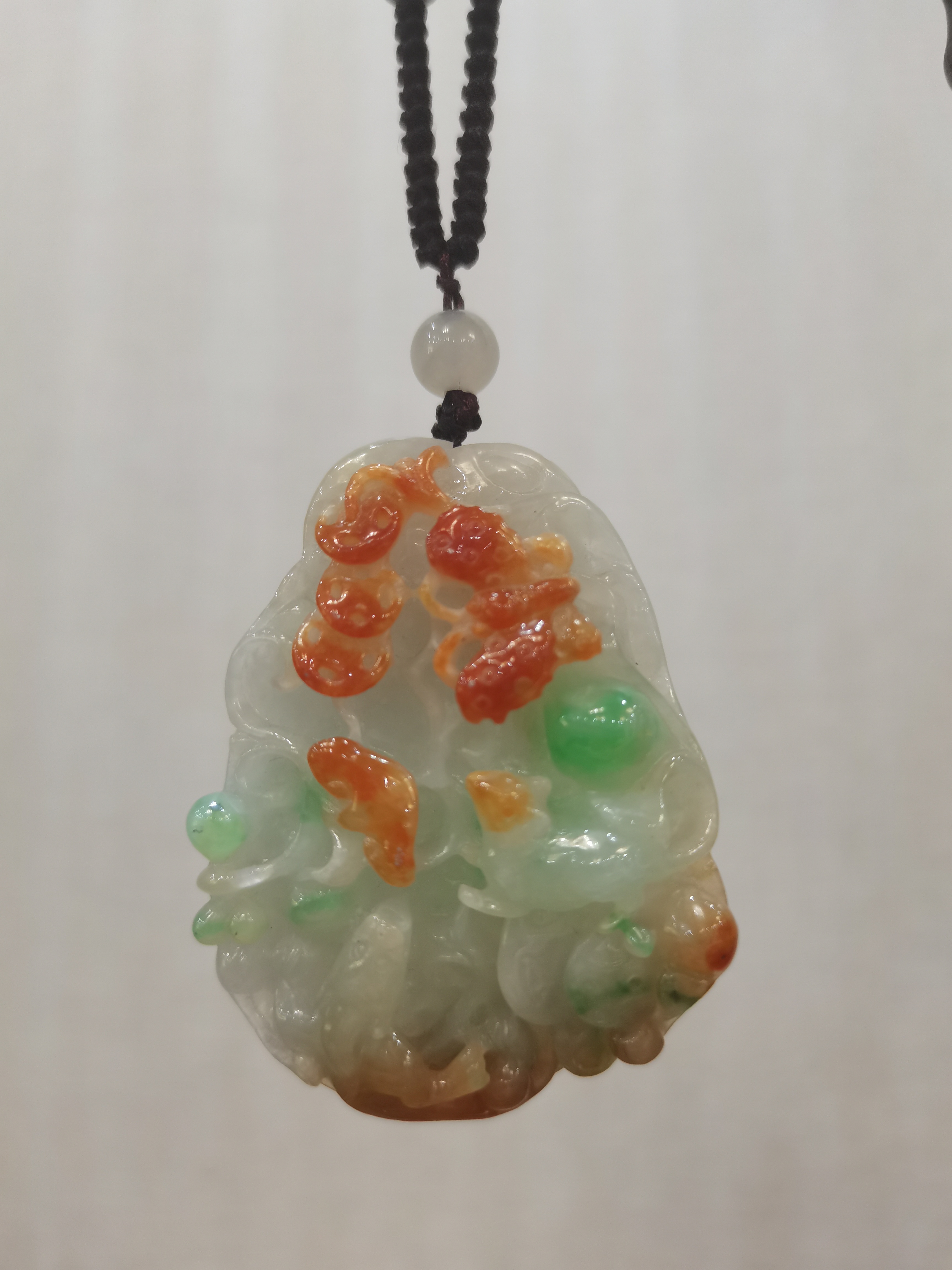 物以稀為貴, 自古以來三色翡翠都是一款難求,可謂稀世珍寶!紅,紅的亮麗,黃,黃得明艷;綠,綠得純粹!配以柔美的灰綠底色,古樸中流露出婉約、流露出經典!作品以淺浮雕的嫻熟技法精雕而成,別具匠心的創意,更是惟妙惟肖。是物與情、物與心的完美結合!如此稀有珍貴的作品,適合佩戴收藏和投資。