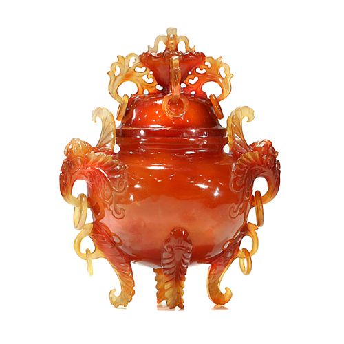 設計端莊、嚴謹、典雅、古樸大方、雕工細膩,突出傳統玉文化的內涵和魅力,具有很高的觀賞和收藏價值。作為千古流傳下來的藝術品之一,香爐與中國源遠流長的玉文化更具有相符相稱的特點。 整體極具深沉雄厚之大氣魄,華貴端莊、瑰麗巧氣,極具古文化的裝飾語言,又富當代氣息。