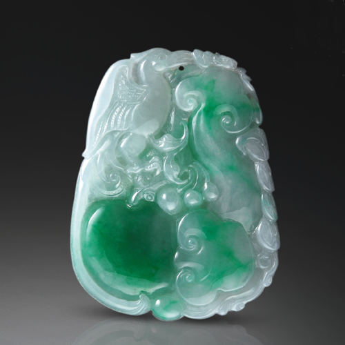 糯種白地青,滋潤水靈,雙面浮雕,雕工繁雜精湛。