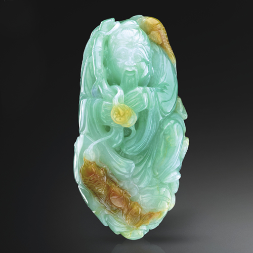 細(xì)糯綠底,翡色鮮亮,漁翁豐收喜悅之情惟妙惟肖。