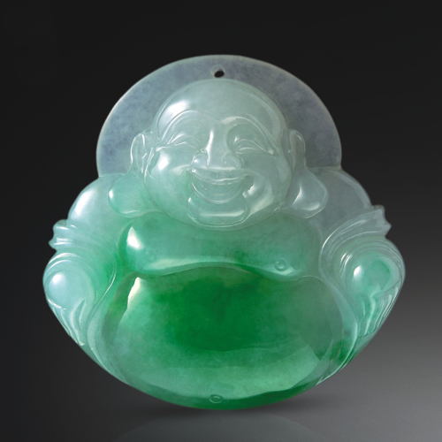 玉質純凈細潤,翠色艷麗,笑佛喜樂開懷。